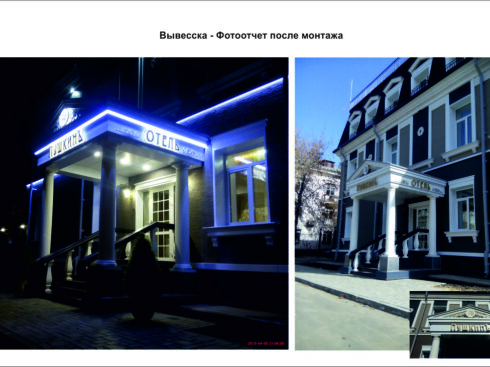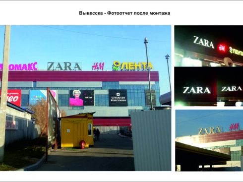 6) МонтажМонтаж готовой вывески происходит в защитной плёнке, которая снимается после окончания всех работ. |