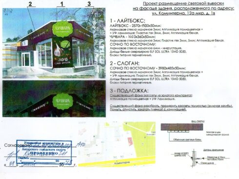 - дизайн-проект, который разработан специальный организацией с учётом особенностей архитектуры, условиям дизайна городской среды, технической безопасности эксплуатации;